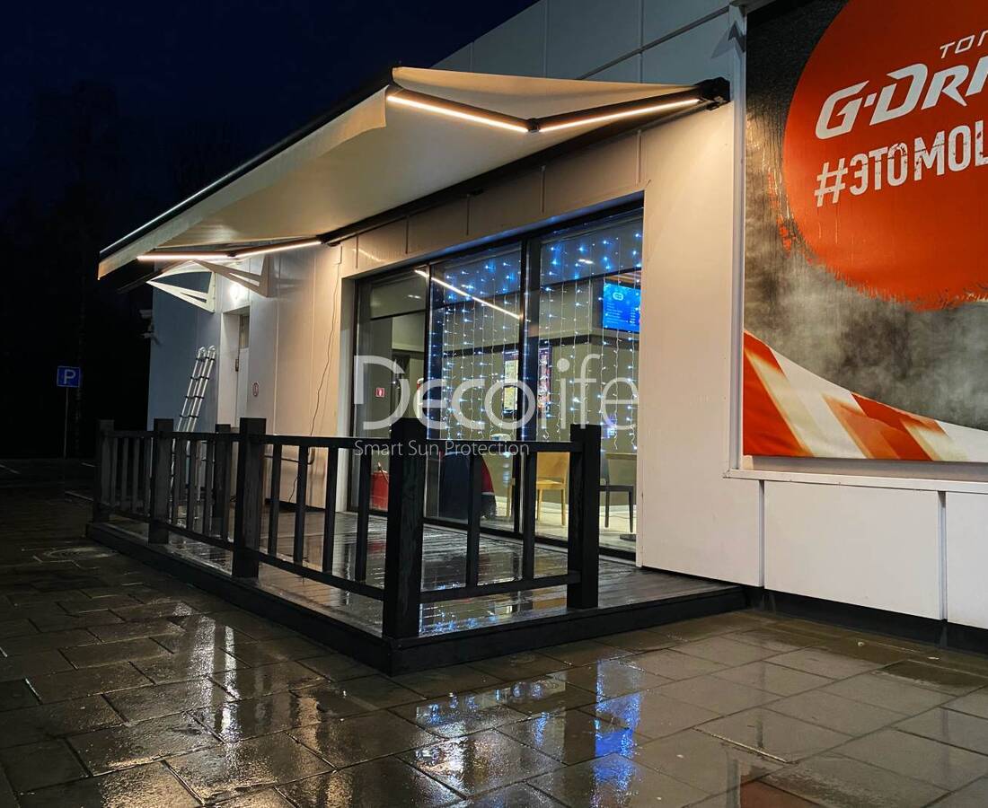 Маркиза кассетная Decolife G500 с подсветкой в локтях - АЗС Газпром, г. Кобрин