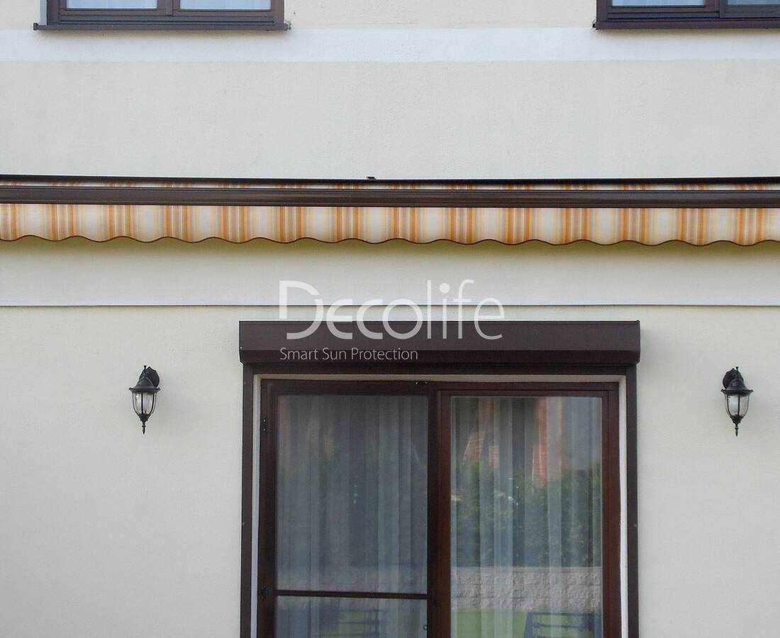 Открытой называется маркиза, не имеющая защитного кожуха. В линейке Decolife представлено несколько вариантов таких систем: G900 и G300, а также G90, G100 и G200. Они оснащаются воланом, который в открытом положении надежно блокирует солнечные лучи, обеспечивая затенение помещений. Для защиты полотна от повреждений и влаги предусмотрен чехол.