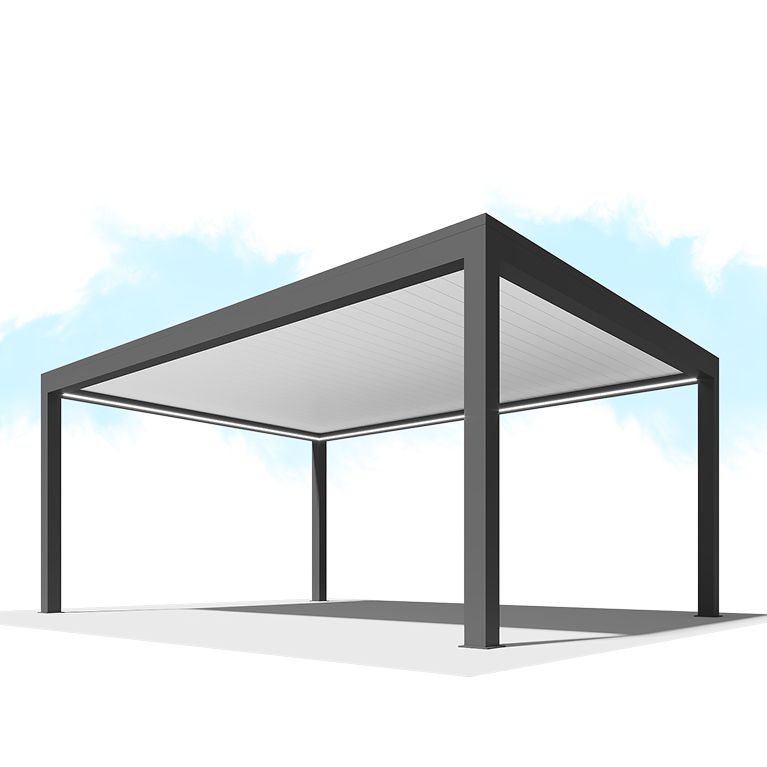 Крыша пергол серии B700 сделана из сдвижных ламелей. Элементы синхронно смещаются и поворачиваются, открывая крышу до 85%. Это позволяет поддерживать нужный микроклимат в жаркую, ветренную или холодную погоду, во время дождя. В припаркованном положении ламели формируют эстетичную кровлю.