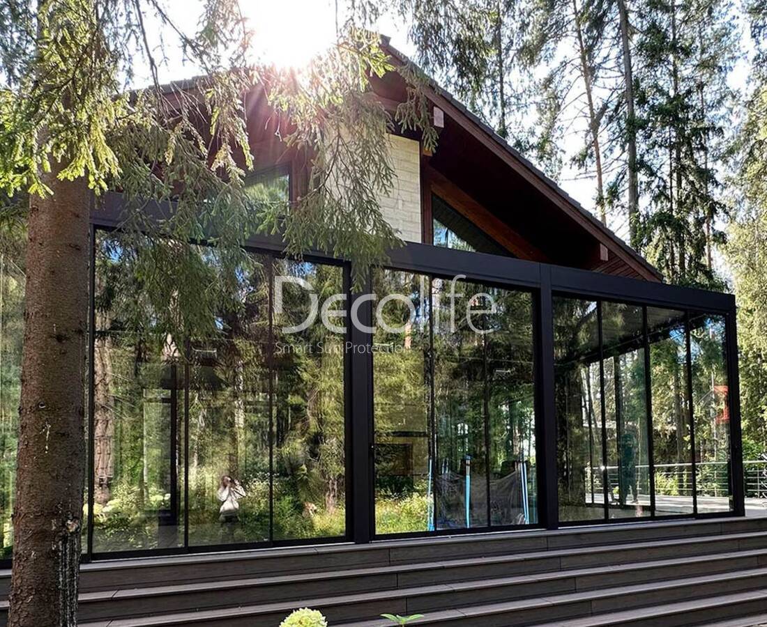 Пергола тентовая Decolife Project Light + Подъемное остекление W500 - реализовано партнером "ООО Люкс Террас" - Московская обл.